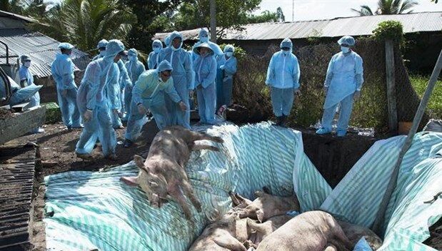 Tiêu hủy ổ dịch tả lợn châu Phi tại xã Tân Hiệp A, huyện Tân Hiệp (Kiên Giang).