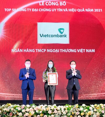 Ngân hàng TMCP Ngoại thương Việt Nam (Vietcombank) được vinh danh là đơn vị dẫn đầu bảng xếp hạng Top 10 Ngân hàng thương mại uy tín năm 2021 và Top 50 Công ty đại chúng uy tín, hiệu quả.