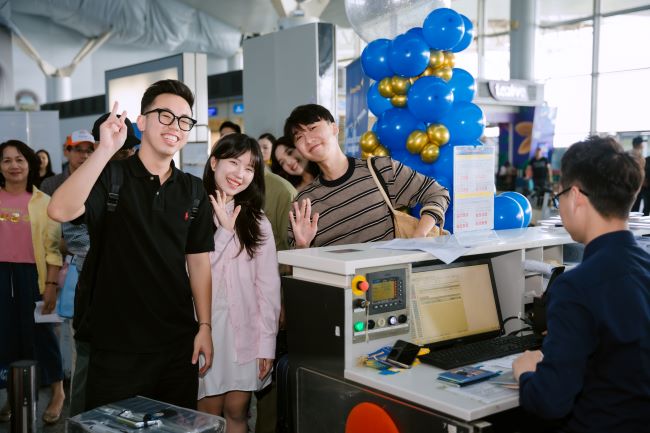 Hành khách phấn khởi trước chuyến bay đến Hoàng Sơn