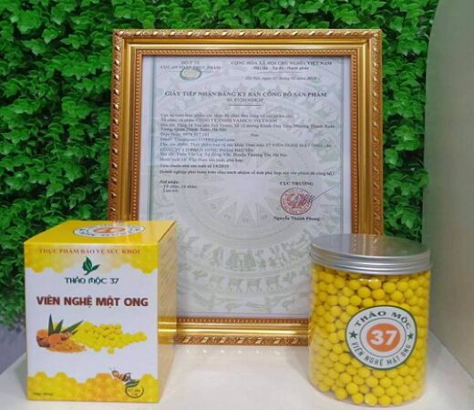 Nhận thấy, khi kết hợp giữa Tinh bột nghệ mật ong có tác dụng nhiều với cơ thể và được coi là bộ đôi hoàn hảo, giúp bạn khoẻ bên trong và đẹp bên ngoài. Công ty TNHH VAMICO VIỆT NAM tự tin đưa đến người tiêu dùng sản phẩm Thực phẩm bảo vệ sức khỏe Viên nghệ Mật ong Thảo mộc 37. Thực phẩm bảo vệ sức khỏe viên nghệ mật ong thảo mộc 37 được Cục An toàn thực phẩm, Bộ Y tế xác nhận công bố sản phẩm và Công ty TNHH Vimacao Việt Nam chịu trách nhiệm về sản phẩm và phân phối.