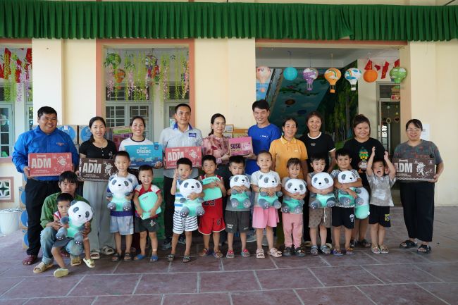 Tại trường mầm non Nhật Tiến, những hộp sữa, những món đồ chơi và lời động viên chân tình được trao tận tay đến các em nhỏ và các cô giáo. Không khí như bừng sáng lại sau những ngày bão lũ.