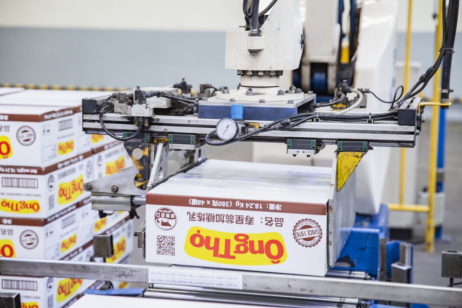 Cánh tay Robot thực hiện thao tác xếp hàng vào pallet, được trang bị tại các nhà máy của Vinamilk.