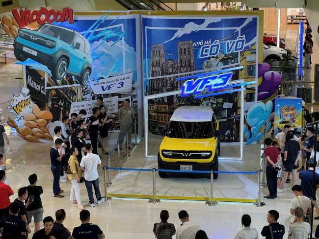 Với gần 28.000 cọc chỉ trong 66 giờ, mẫu xe VF 3 trở thành “hiện tượng” trên thị trường ô tô Việt (Hình ảnh tại Vincom Center Trần Duy Hưng, Hà Nội).