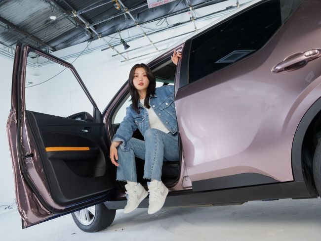 Mang đến hình ảnh năng động bên cạnh VinFast VF 5 màu hồng tím, Kim You Jung diện bộ đồ jean cùng giày thể thao, phù hợp với những chuyến đi chơi xa, hoạt động ngoài trời hay đơn giản là đi mua sắm cùng bạn bè. Hình ảnh này hẳn sẽ khiến những tín đồ du lịch mê mẩn chiếc VF 5 bắt mắt này.