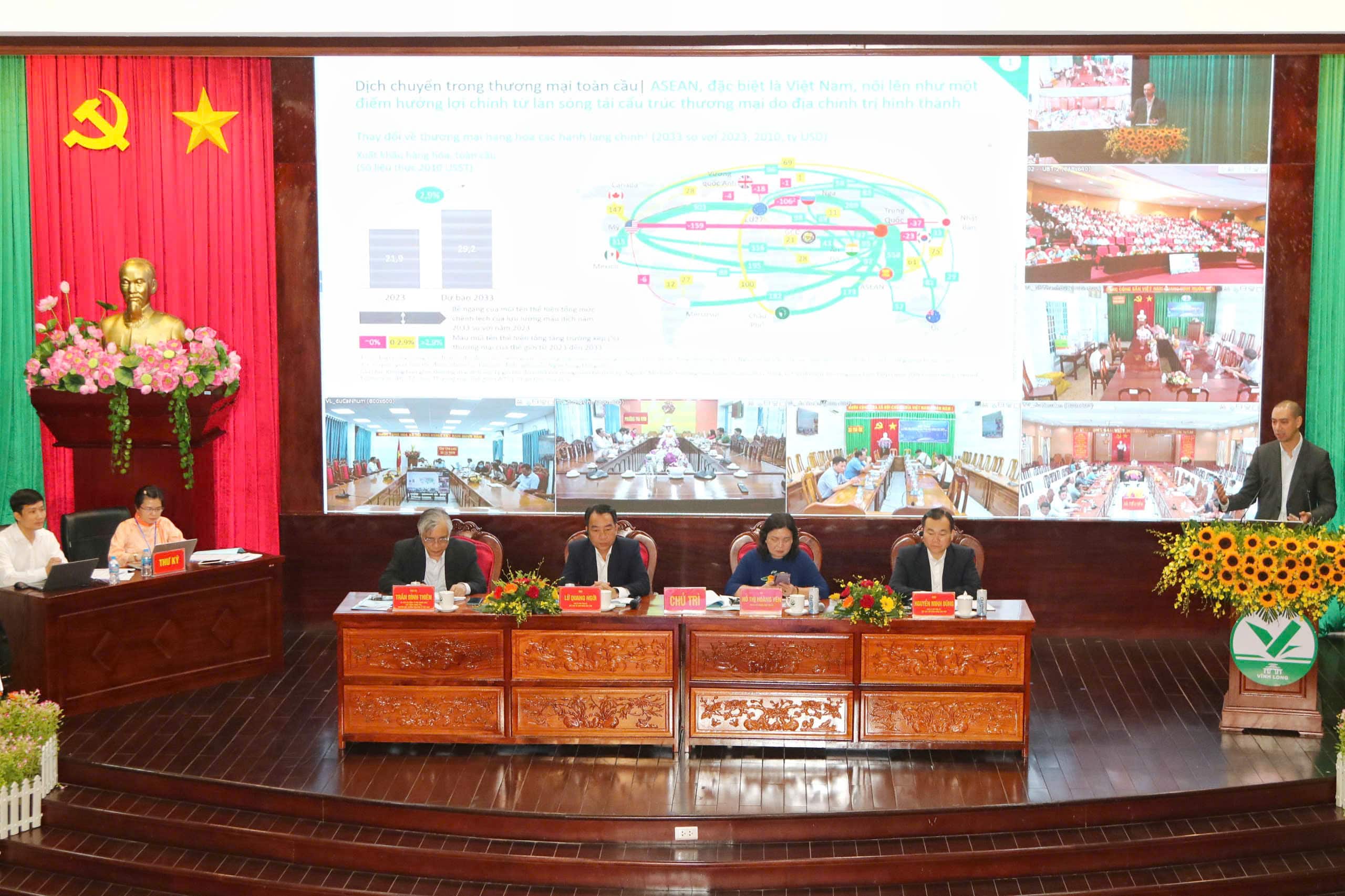 Dự và chủ trì Hội thảo có các đồng chí: Hồ Thị Hoàng Yến – Phó Bí thư Thường trực Tỉnh ủy; Lữ Quang Ngời – Phó Bí thư Tỉnh ủy, Chủ tịch UBND tỉnh; Nguyễn Minh Dũng – Phó Bí thư Tỉnh ủy, Chủ tịch HĐND tỉnh; cùng PGS.TS Trần Đình Thiên – Ủy viên Hội đồng Tư vấn Chính sách Thủ tướng Chính phủ, nguyên Viện trưởng Viện Kinh tế Việt Nam. Tham dự còn có lãnh đạo, nguyên lãnh đạo các bộ, ngành Trung ương, lãnh đạo 3 tỉnh Vĩnh Long, Bến Tre, Trà Vinh; cùng đông đảo chuyên gia, nhà khoa học, doanh nghiệp. Hội thảo được tổ chức trực tiếp kết hợp trực tuyến với điểm cầu tại các xã, phường.