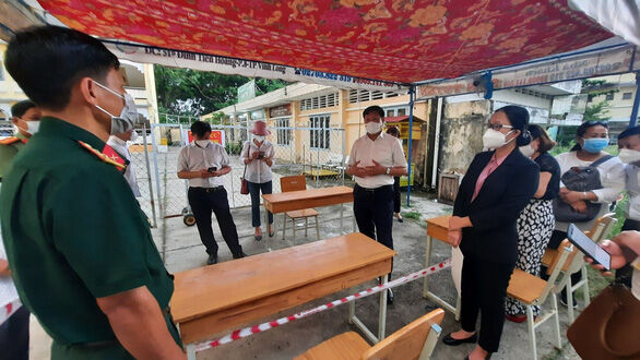 Thứ trưởng Bộ Y tế Đỗ Xuân Tuyên (giữa) kiểm tra công tác phòng chống dịch tại khu cách ly tập trung ở Trường cao đẳng Vĩnh Long – Nguồn: Internet