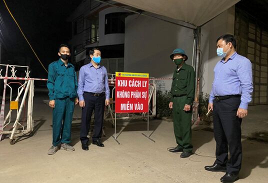 Chủ tịch UBND huyện Vĩnh Tường Lê Nguyễn Thành Trung trực tiếp kiểm tra chốt phong tỏa cách ly y tế xã Lũng Hòa, Bồ Sao
