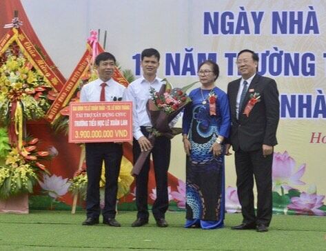 Vợ chồng Ts. Ls Lê Xuân Thảo trao số tiền 3,9 tỷ đồng cho Trường tiểu học Lê Xuân Lan phục vụ công tác sửa chữa, xây dựng cơ sở vật chất nhà trường