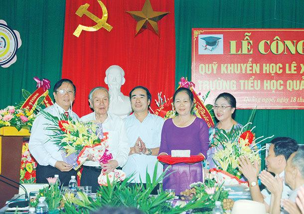 Ts. Ls Lê XuânThảo - Ts. Lê Bích Thắng ủng hộ hơn 200 triệu đồng cho Qũy khuyến học Lê Xuân Lan trường tiểu học Quảng Ngọc(nơi nhà giáo Lê Xuân Lan đã từng dạy học ở đây)