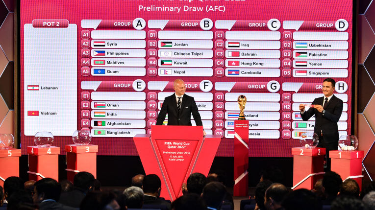 Quang cảnh lễ bốc thăm chia bảng vòng loại thứ 2 World Cup 2022 khu vực châu Á tại Kuala Lumpur, Malaysia chiều 17/7. Ảnh: AFC