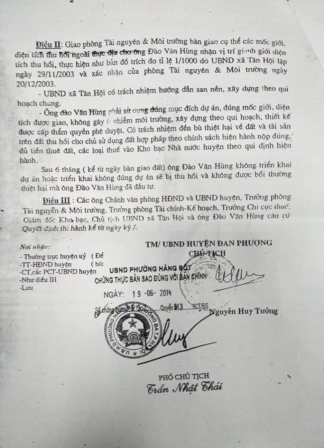 Văn bản UBND huyện Đan Phượng về việc thu hồi đất nông nghiệp chuyển thành đất chuyên dùng, giao cho hộ gia đình ông Đào Văn Hùng (cụm 9, thôn Thúy Hội, xã Tân Hội) thuê đất để xây dựng xưởng sản xuất đồ gỗ dân dụng