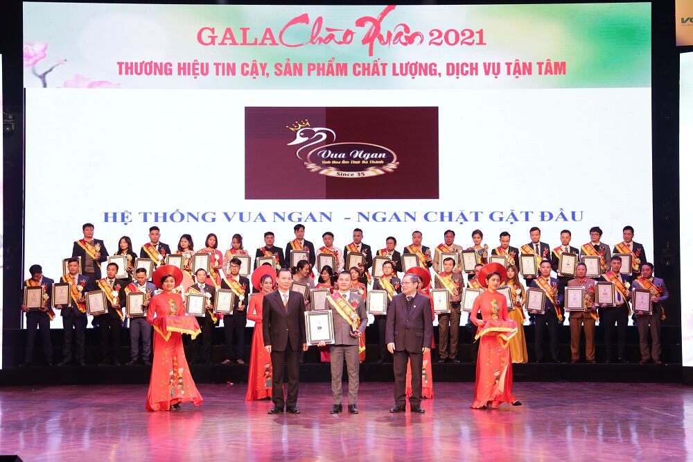 Bằng những giá trị tinh hoa ẩm thực trao đến với mỗi khách hàng trong những năm qua, ngày 10/01/2021, trong khuôn khổ chương trình “Gala chào xuân 2021 - Tự hào thương hiệu đất Việt”, thương hiệu Vua Ngan đã vinh dự được các cơ quan hữu quan và người tiêu dùng tín nhiệm, bình chọn là Top 10 “Thương hiệu tin cậy - Sản phẩm chất lượng - Dịch vụ tận tâm” năm 2020.