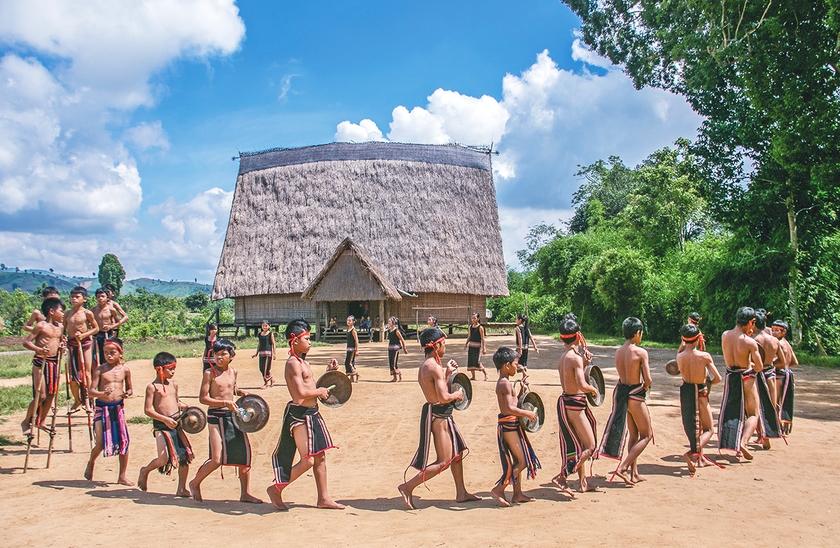 Đội cồng chiêng làng Kon Măh (xã Hà Tây, huyện Chư Păh) trong một buổi tập luyện. Ảnh: Nguyễn Linh Vinh Quốc