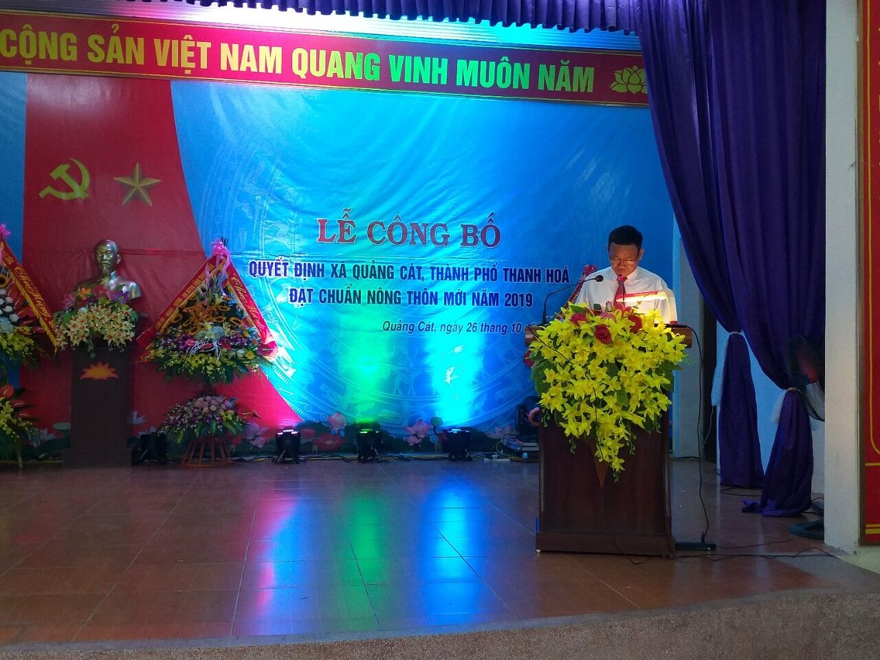 VNHN - Sáng 26-10, xã Quảng Cát, Thành phố Thanh Hóa tổ chức Lễ công bố quyết định công nhận xã đạt chuẩn nông thôn mới (NTM). Dự buổi lễ có đại diện lãnh đạo Văn phòng Điều phối xây dựng NTM tỉnh; Lãnh đạo Thành phố Thanh Hóa cùng đông đảo cán bộ, đảng viên và nhân dân địa phương.