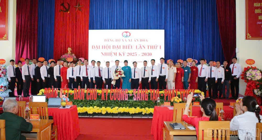 Ban chấp hành Đảng bộ Xã Xuân Hòa nhiệm kỳ 2025-2030 ra mắt Đại hội. Ảnh: Báo Lào Cai
