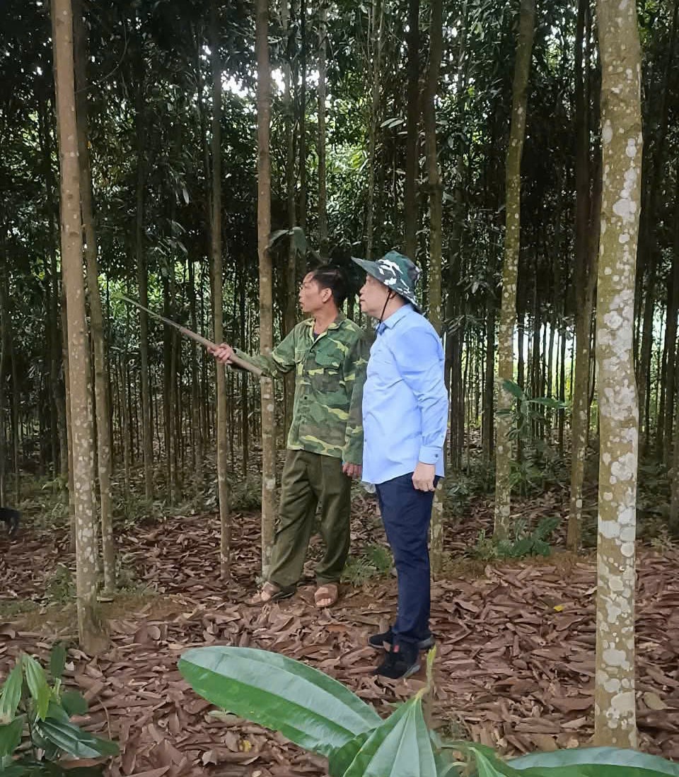Lãnh đạo xã Xuân Hòa thăm hộ trồng quế tại địa phương