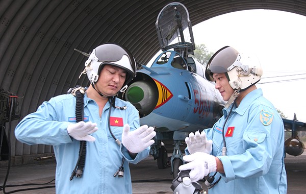 Phi công Trung đoàn 921, Sư đoàn 371 trao đổi kinh nghiệm trước ban bay. Ảnh: Thành Trung
