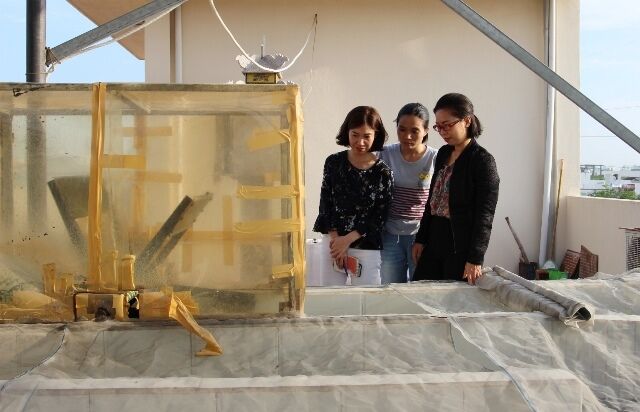 Mô hình nuôi tảo khép kín trên sân thượng của chị Thư. Ảnh : nhandan.com.vn