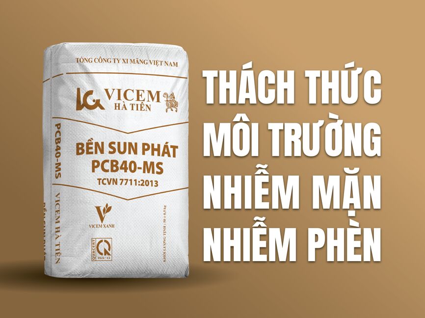 Nhiệt độ Trái Đất nóng lên, gây hạn hán kéo dài, mực nước biển dâng cao, xâm lấn không kiểm soát. Mối đe dọa nhiễm phèn, nhiễm mặn do biến đổi khí hậu đã trở nên nghiêm trọng và ngày càng rõ rệt. Sớm nắm bắt được xu hướng thực trạng này, để khắc phục, Công ty CP Xi măng Vicem Hà Tiên với biểu tượng Kỳ Lân đã nỗ lực nghiên cứu và cho ra đời loại xi măng Bền Sun Phát PCB40-MS có khả năng chống chịu với các ion Sun Phát, Clo cao trong môi trường biển, giảm thiểu tối đa quá trình phá hoại ăn mòn hóa học này.