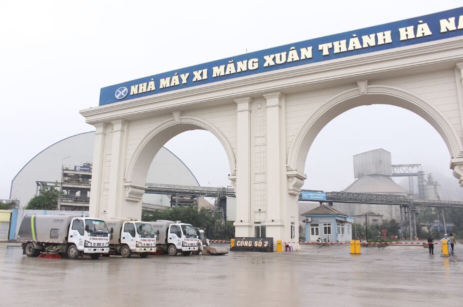 Đội xe quét dọn, vệ sinh môi trường của nhà máy Xi măng Xuân Thành Hà Nam.