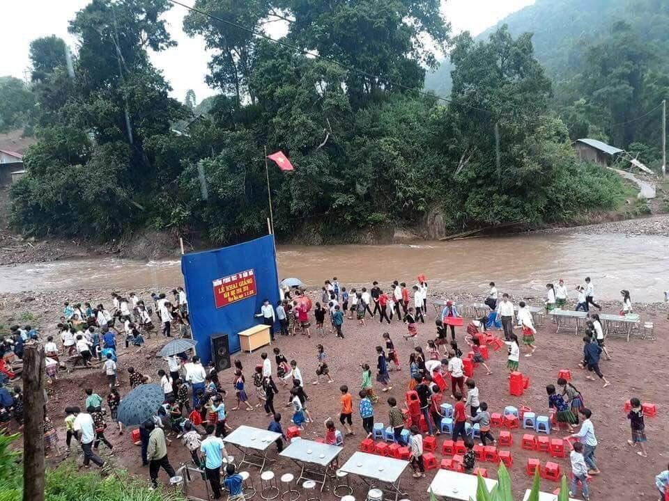 Do vừa trải qua những trận lũ quét hồi tháng 7 và tháng 8 khiến sân trường cũng như phòng học bị thiệt hại nặng nề nên nhà trường không có chỗ để tổ chức lễ khai giảng. Để chuẩn bị cho năm học mới được chu tất và các học sinh được hòa mình trong không khí ngày khai giảng của cả nước, thầy cô và học sinh trường đã sắp xếp buổi lễ khai giảng ngay bên bờ suối trong không khí xúc động.