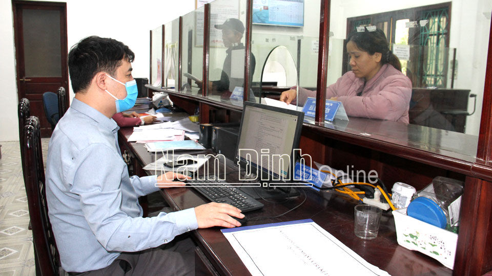 Cán bộ huyện Ý Yên giải quyết thủ tục hành chính cho người dân tại bộ phận “một cửa”.